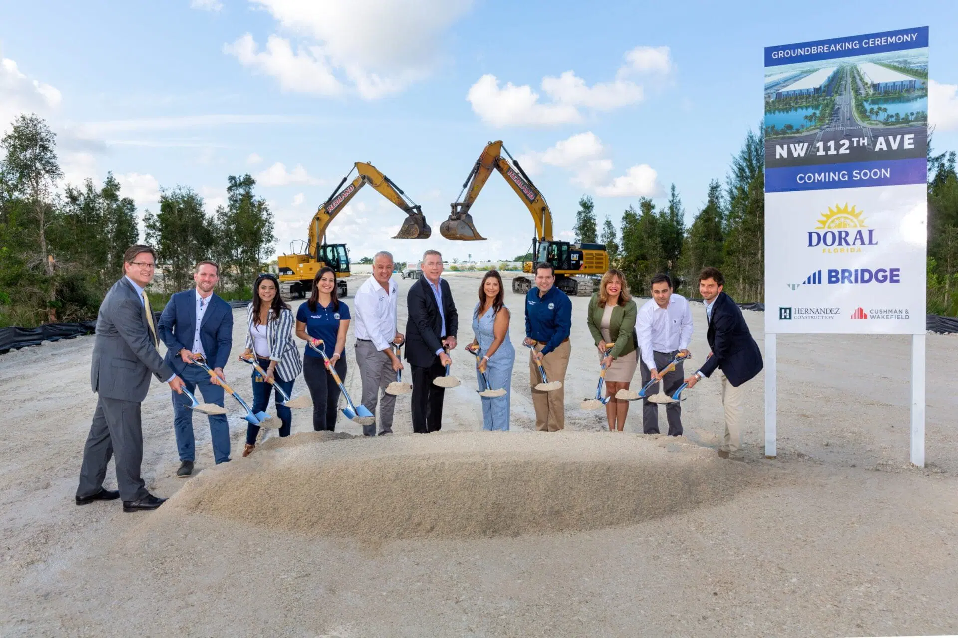 MIAMI, FL – (August 7, 2023) – The City of Doral, together with Bridge Industrial (“Bridge”), a privately-owned, vertically integrated real estate operating company and investment manager, recently held a groundbreaking ceremony to mark the commencement of a new access road project at NW 112th Avenue, situated in the heart of Doral. Anticipated to be completed in June 2024, this new roadway will significantly improve accessibility across the city and provide direct access to Bridge Industrial’s newest state-of-the-art South Florida logistics park: Bridge Point Doral.